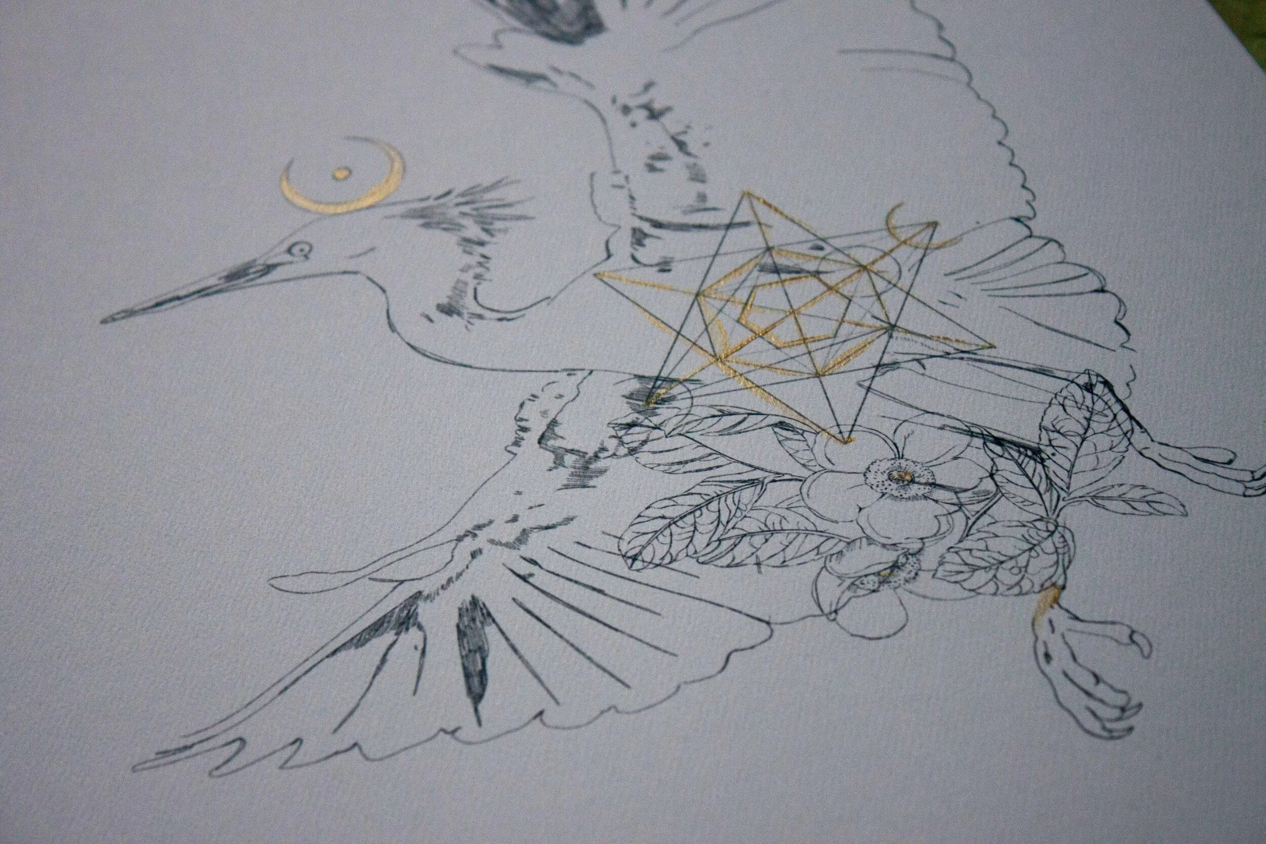 Digitální kresba v kombinaci s metalickým inkoustem, tvořený na míru zákazníkovi.